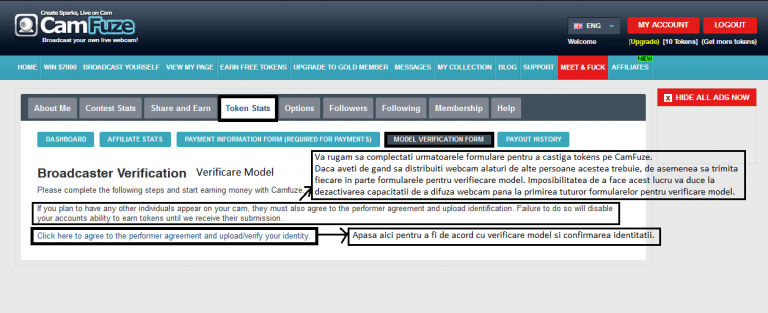 Pasul 8 Step 1:Broadcaster verification. Pentru a fi verificat ca model va trebui complectat formularul Broadcaster verification.